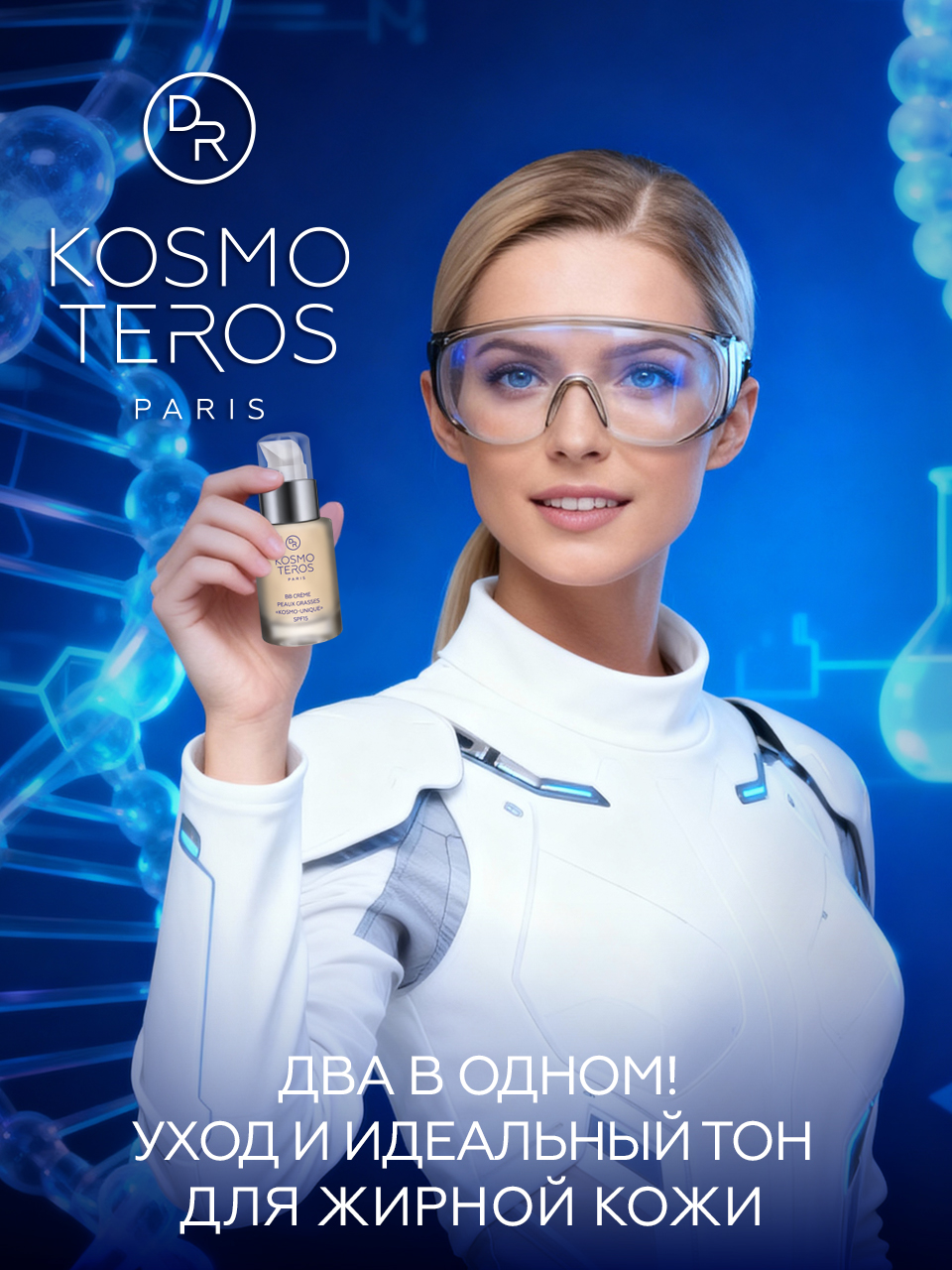 Ежедневный дневной уход за жирной кожей становится легким с BB-кремом «KOSMO-UNIQUE» SPF15 французской аптечной косметики Dr KOSMOTEROS (Paris), в составе которого отсутствуют компоненты, запрещенные к использованию международным стандартом ECOCERT. Многофункциональный увлажняющий BB-крем с тонирующим эффектом, идеально подстраивающийся под оттенок кожи, станет помощником в придании жирной коже естественного ровного оттенка. Сочетает в себе уходовое и тональное средство. Питает и увлажняет в течение всего дня, не оставляя неприятных ощущений на коже. Особенностью крема является небольшая плотность консистенции и легкость покрытия (в отличие от многих тональных основ и кремов). ВВ-крем подстраивается под тон кожи, маскируя незначительные недостатки, увлажняет и защищает от солнца с уровнем SPF 15. Трехфракционная гиалуроновая кислота с органически связанными цинком и медью формирует на коже защитную воздухопроницаемую плёнку, обеспечивающую длительное увлажнение кожи и мощную антиоксидантную защиту. ВВ-крем оказывает мягкое и бережное воздействие, хорошо впитывается, не оставляет жирного блеска, не стягивает и матирует кожу, придает гладкость, легкое сияние, обеспечивает красивый здоровый цвет лица даже самой чувствительной коже. Благодаря активизации коллагена и эластина восстановление кожи происходит почти мгновенно, микрорельеф кожи становится ровным, а мелкие дефекты незаметными. Результат применения - увлажненная, матовая, без жирного блеска кожа.