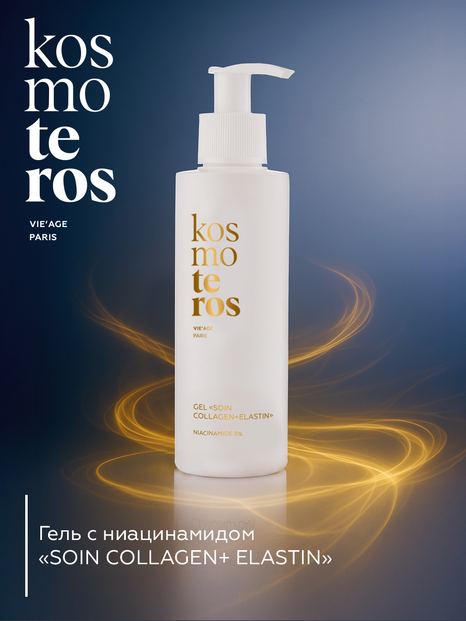 Уникальный гель с ниацинамидом «Soin Collagene+Elastin» с ниацинамидом, эластином и коллагеном морского происхождения от французской профессиональной косметики KOSMOTEROS VIE’AGE (Paris) — это не просто уход, а многофункциональный эликсир восстановления, в котором